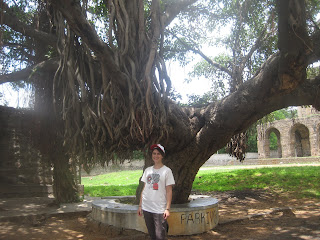 Here, more than even before, Helen and I got a lot of attention. We were constantly asked to pose for pictures, and I felt bad saying no to anyone, especially to little kids. Almost everyone did it kindly, except for one group of guys; they laughed a bit too raucously and started trying to pose holding my hand (which is pretty weird for India) and such, so from them I broke away. After that encounter, a few more families asked for pictures. Then an old lady arrived, talked to me in Telegu, took me by the elbow and escorted me down the entire stairway to a jail near the base of the fort. It was fascinating, exciting, and sometimes overwhelming. Helene thinks I get even more attention than her because of my height, slightly lighter hair and green eyes.